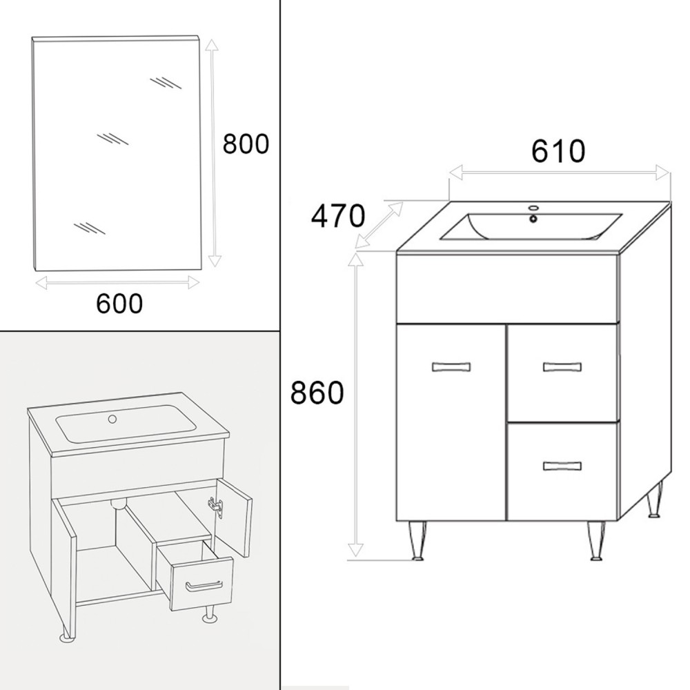 | bulletpointA | Meuble de salle de bain sur pieds avec simple vasque encastrée incluse. |