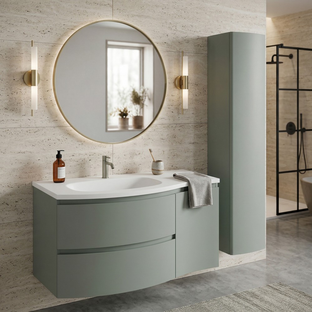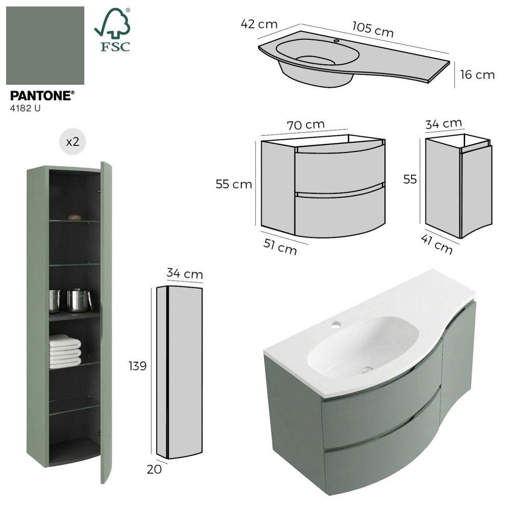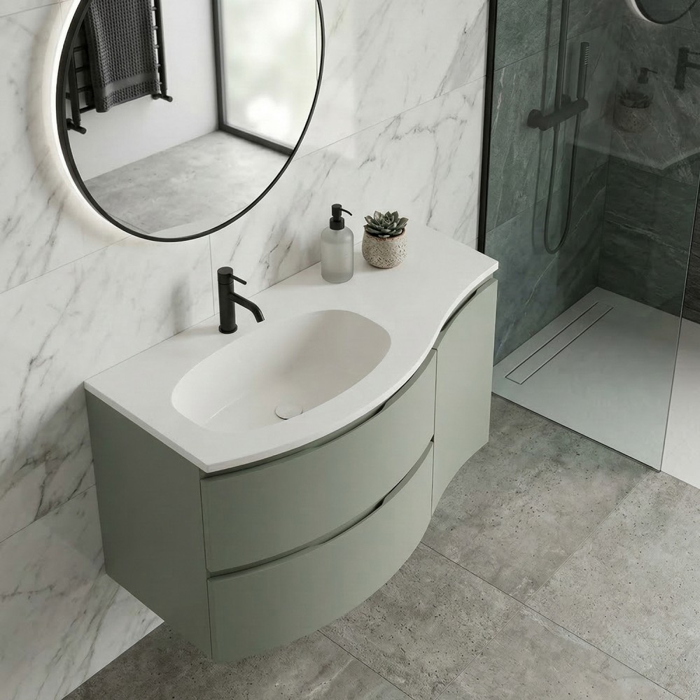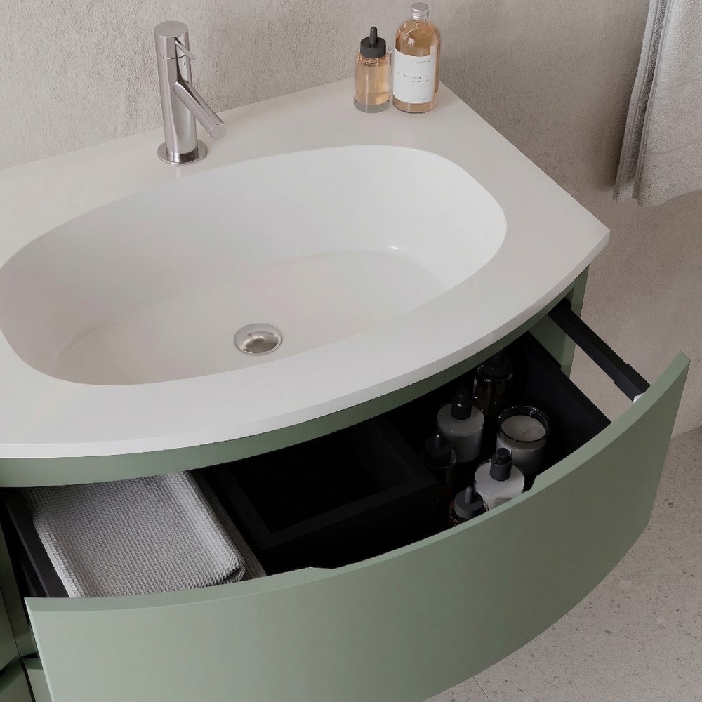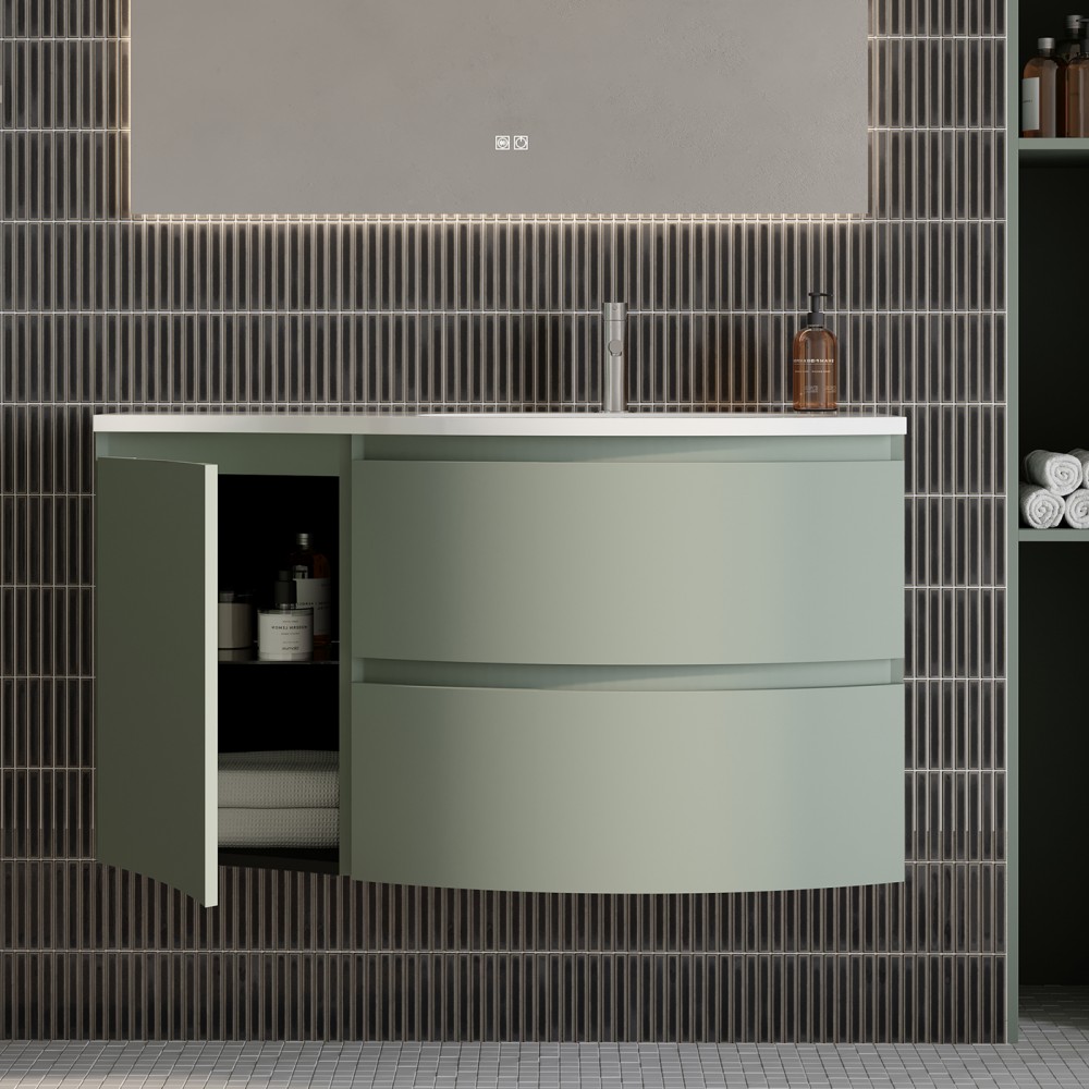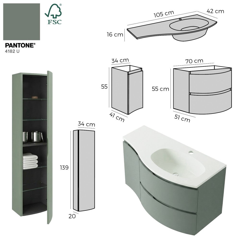 | bulletpointA | ARMONIA meuble simple vasque encastrée largeur 105 cm à suspendre, coloris vert sauge finition mate |
