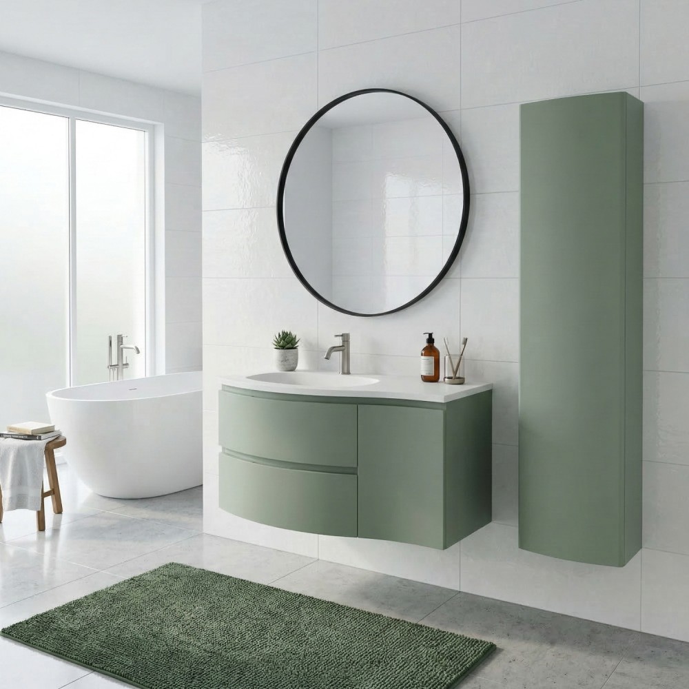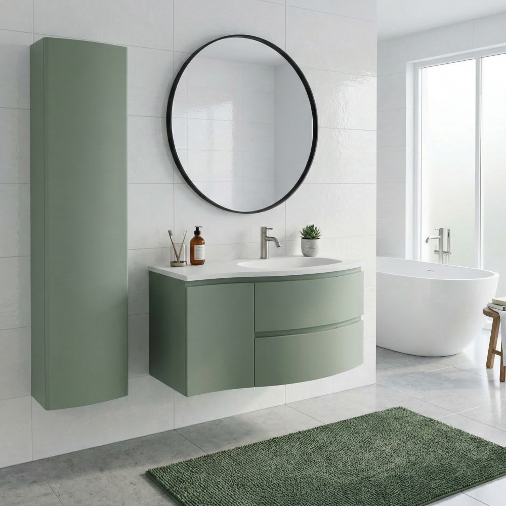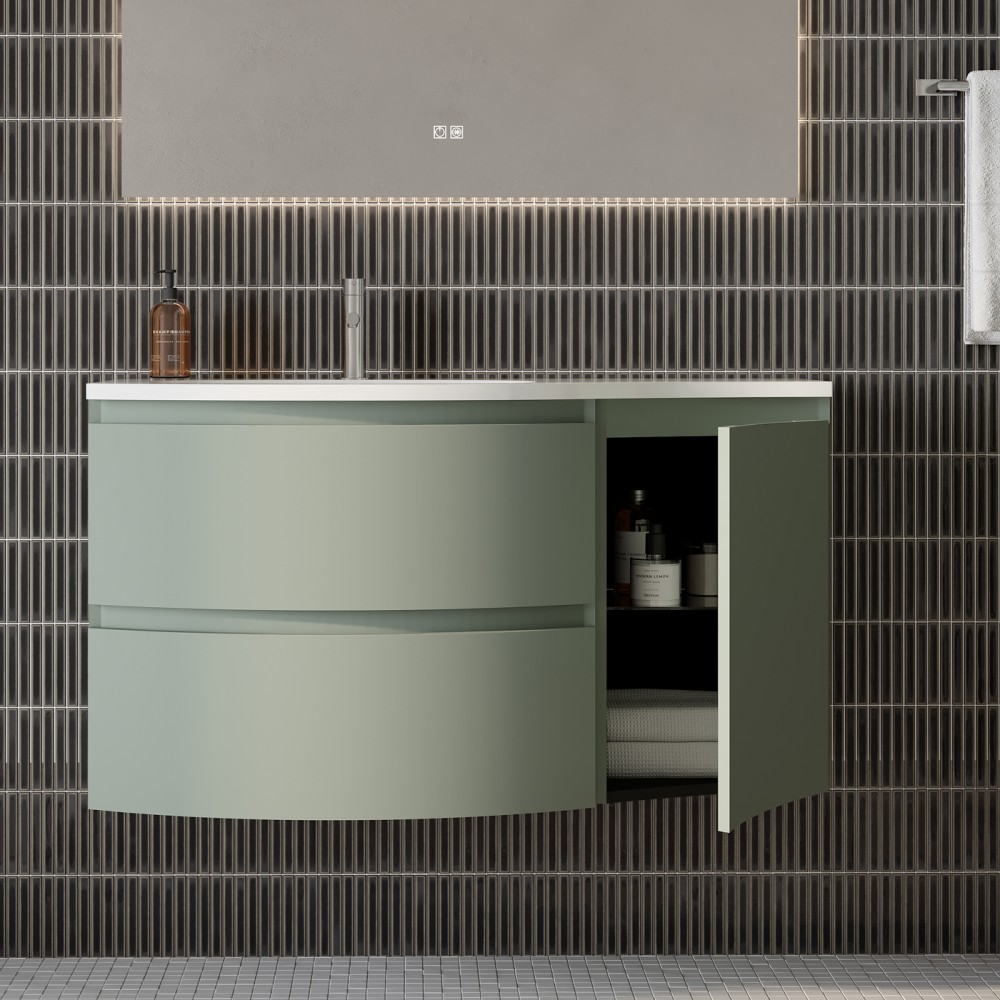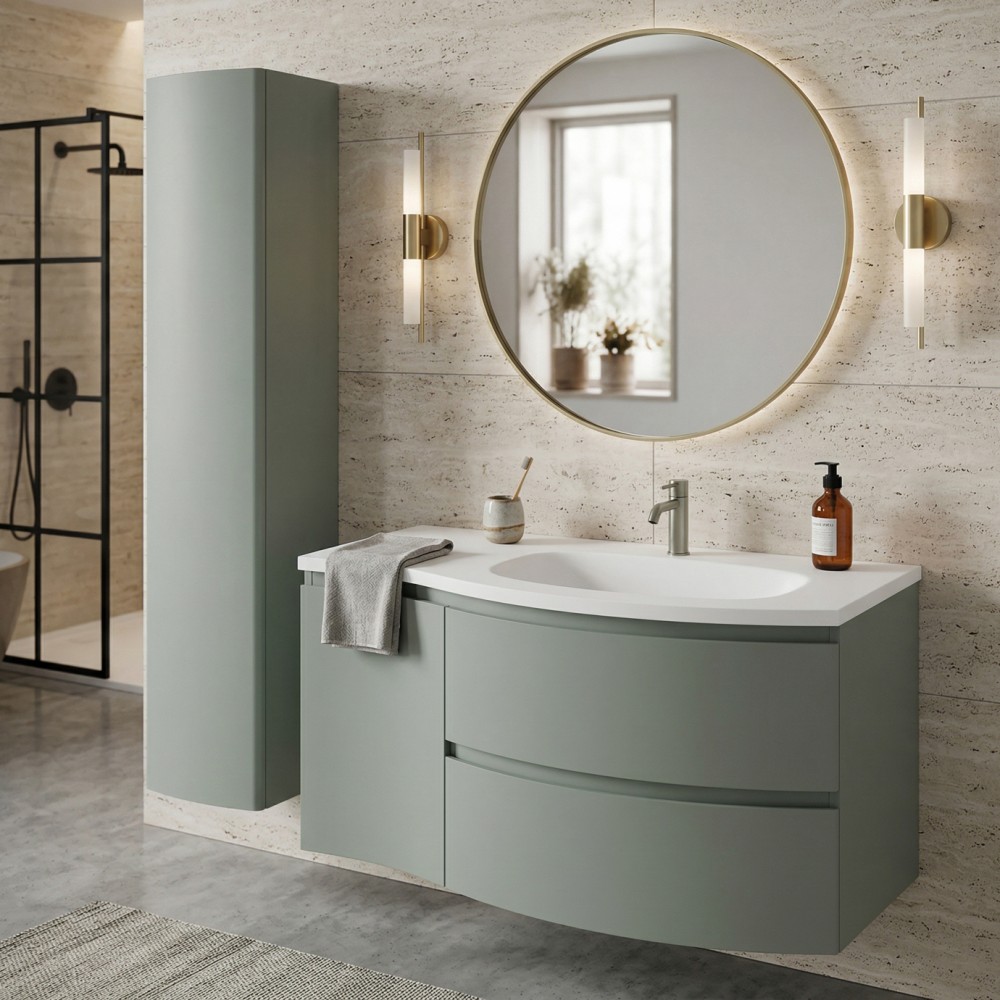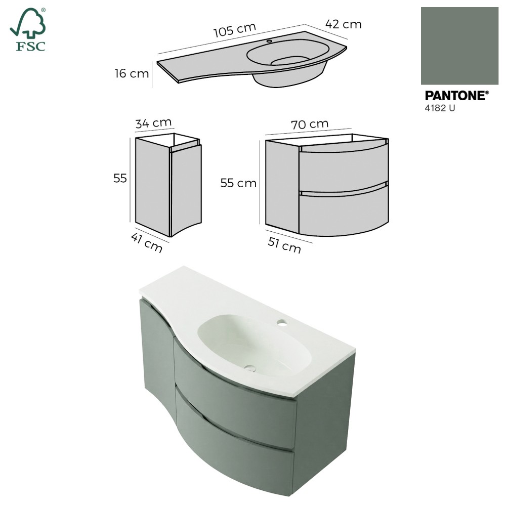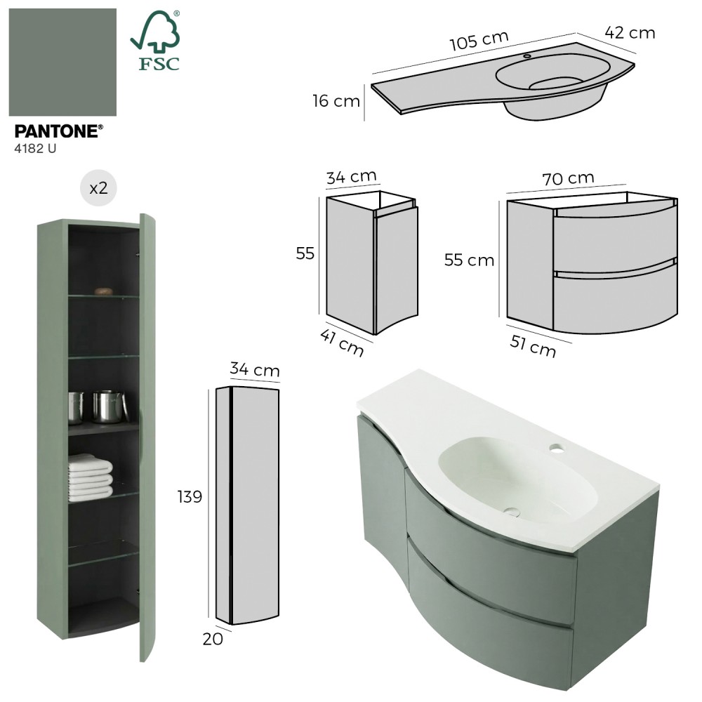 | bulletpointA | ARMONIA meuble simple vasque encastrée largeur 105 cm à suspendre, coloris vert sauge finition mate |