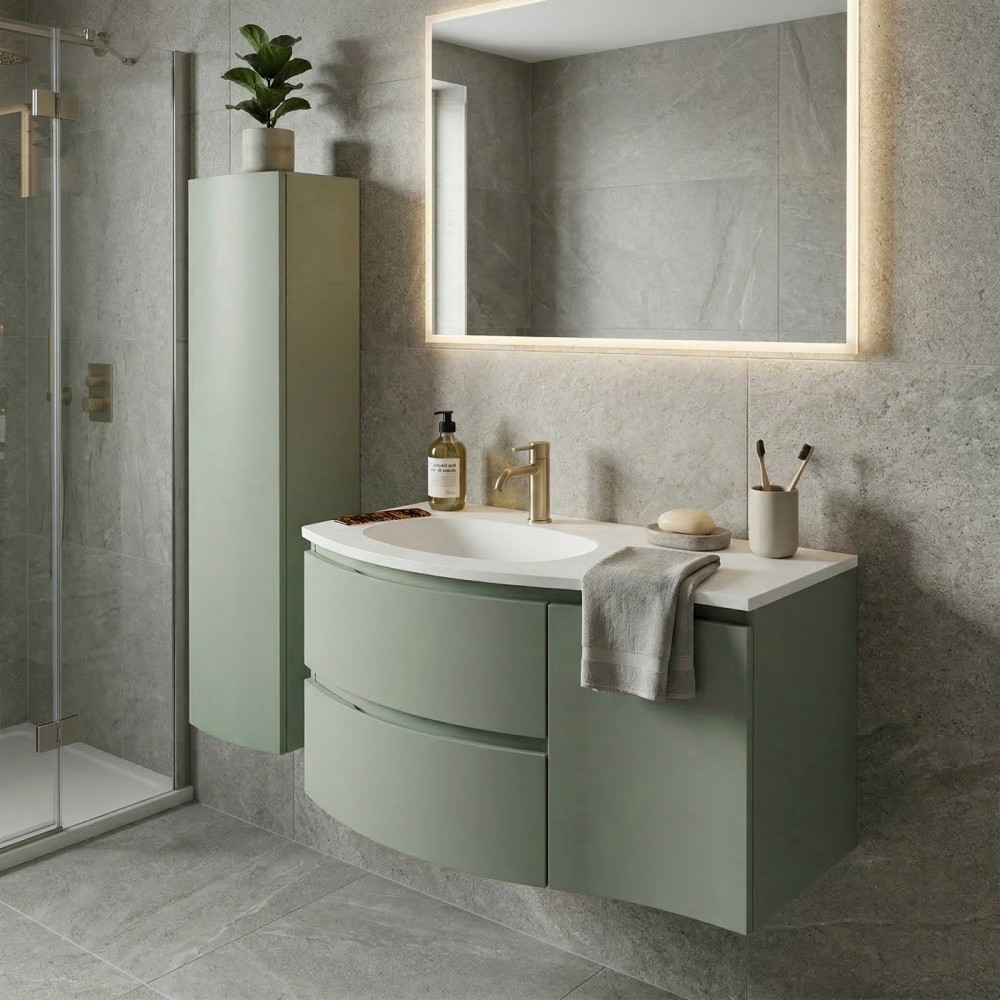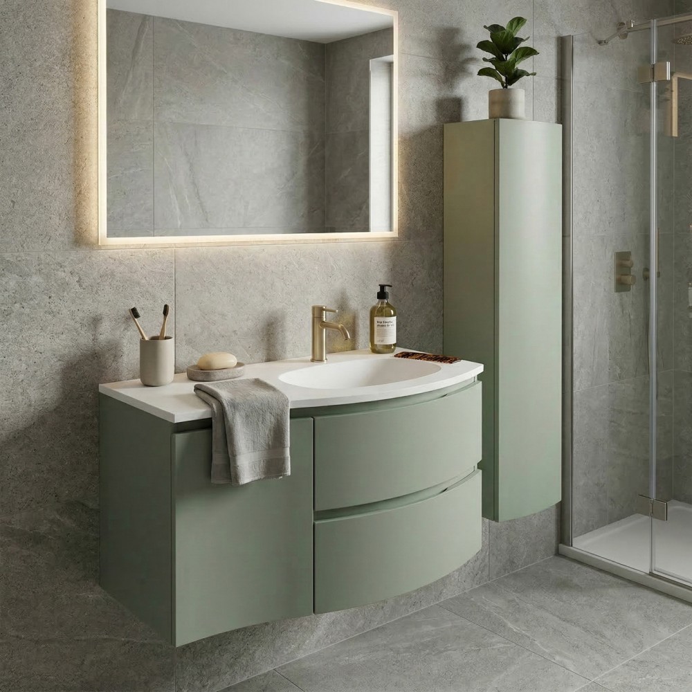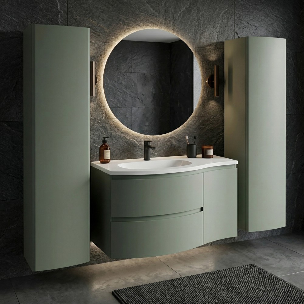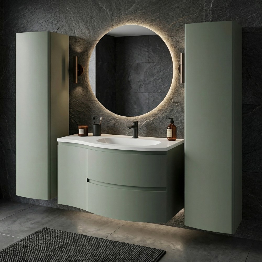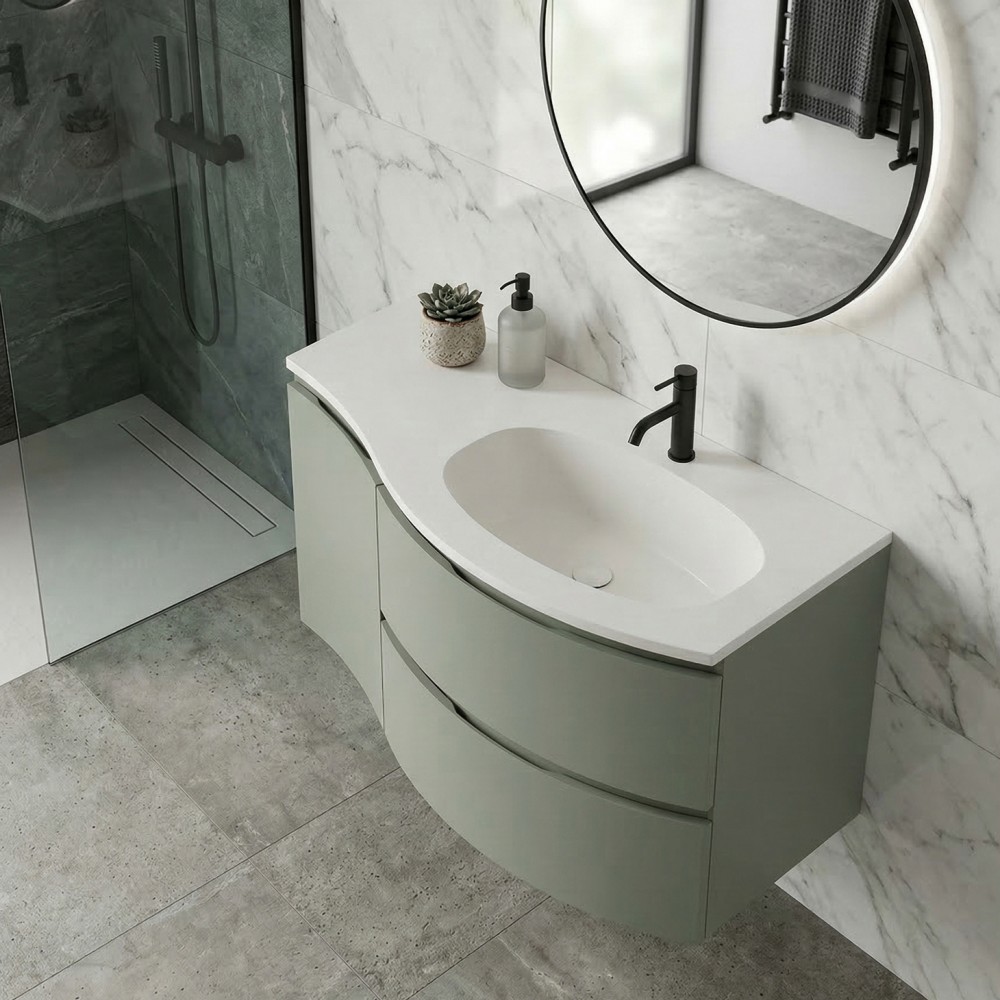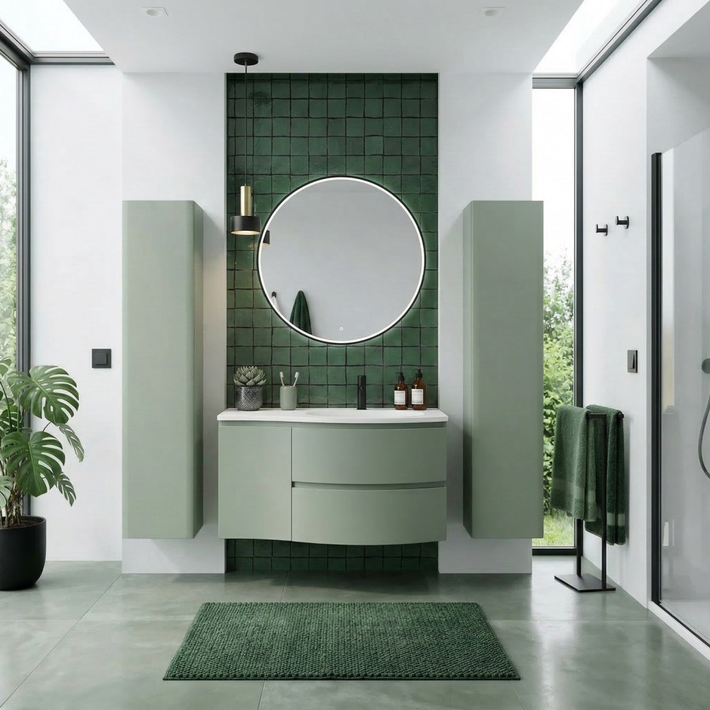 | bulletpointA | ARMONIA meuble simple vasque encastrée largeur 105 cm à suspendre, coloris vert sauge finition mate |