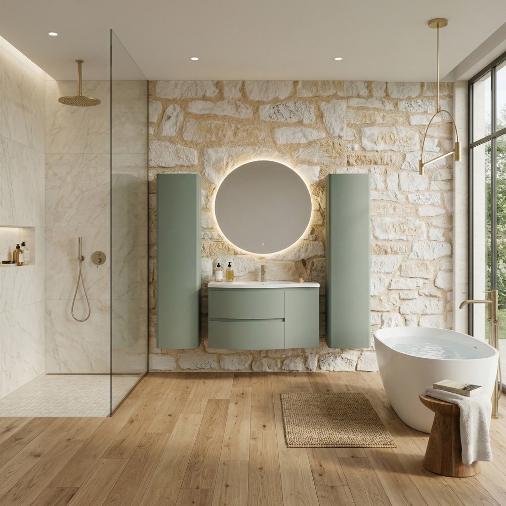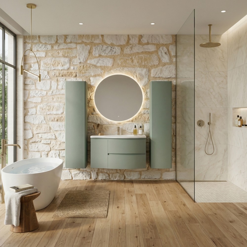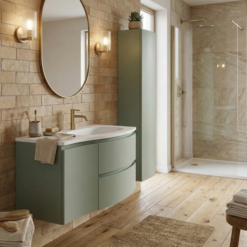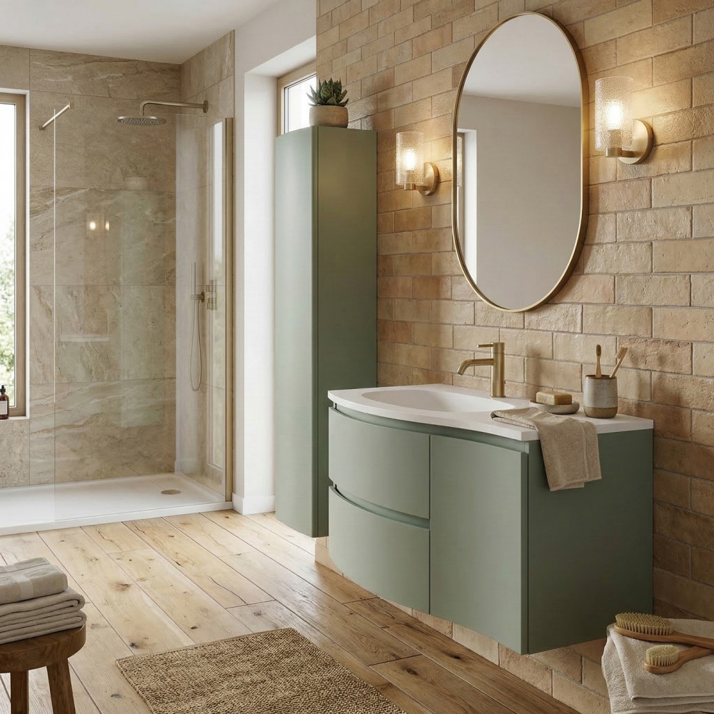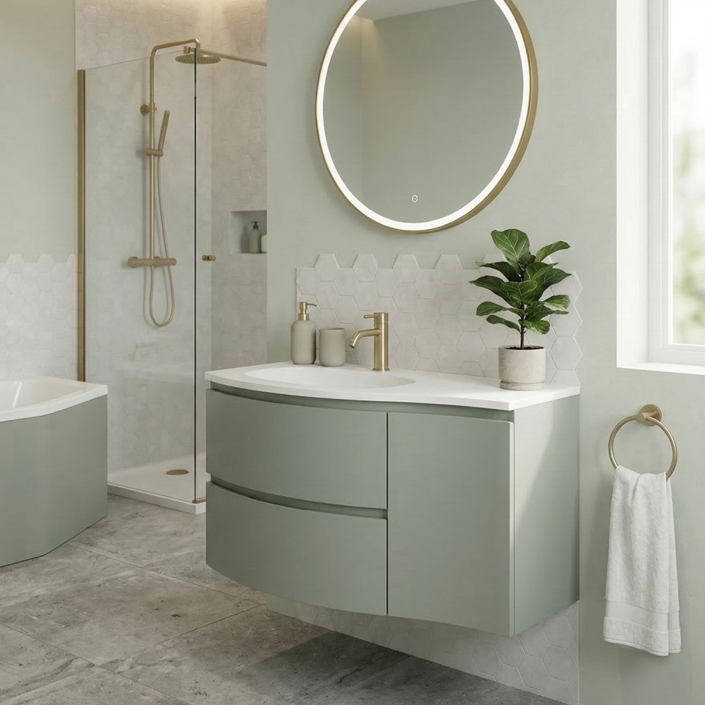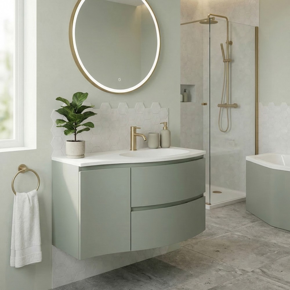 | bulletpointA | ARMONIA meuble simple vasque encastrée largeur 105 cm à suspendre, coloris vert sauge finition mate |