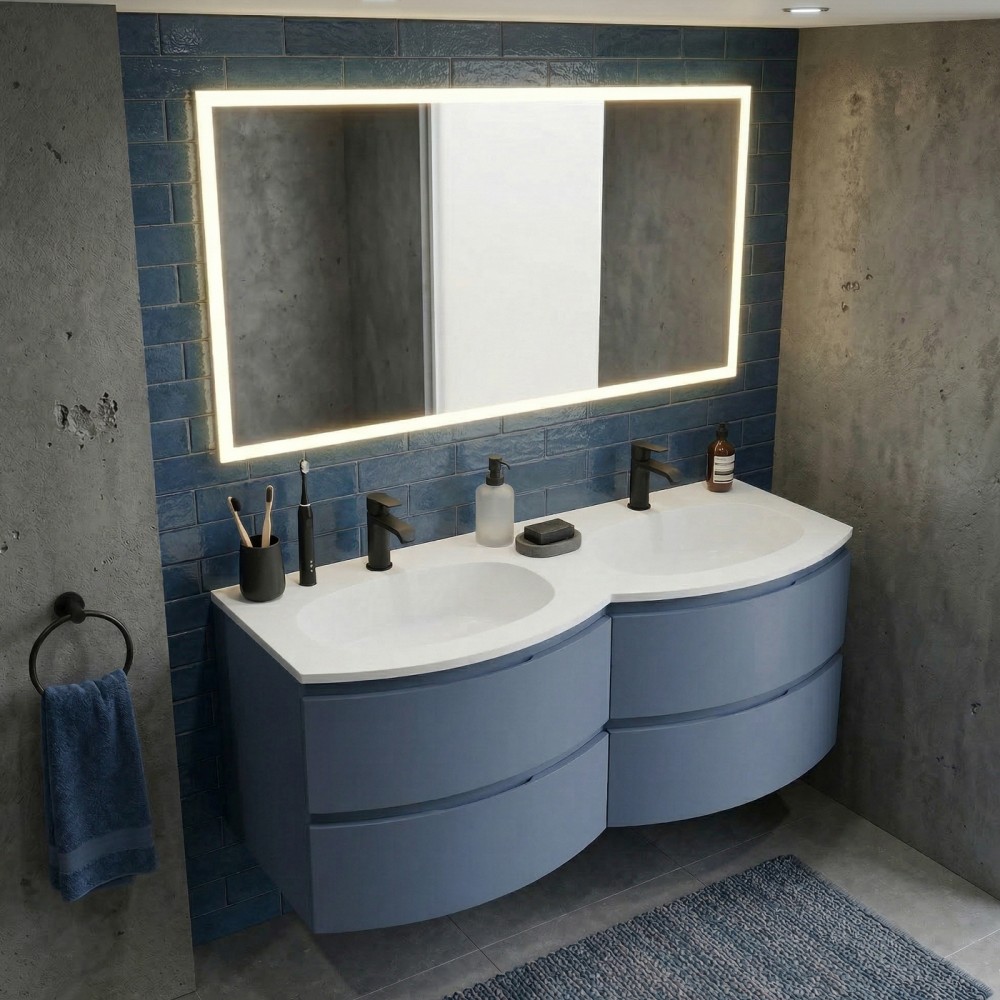 | bulletpointA | ARMONIA meuble double vasque encastrée à suspendre largeur 140 cm, coloris bleu-mer finition mate |