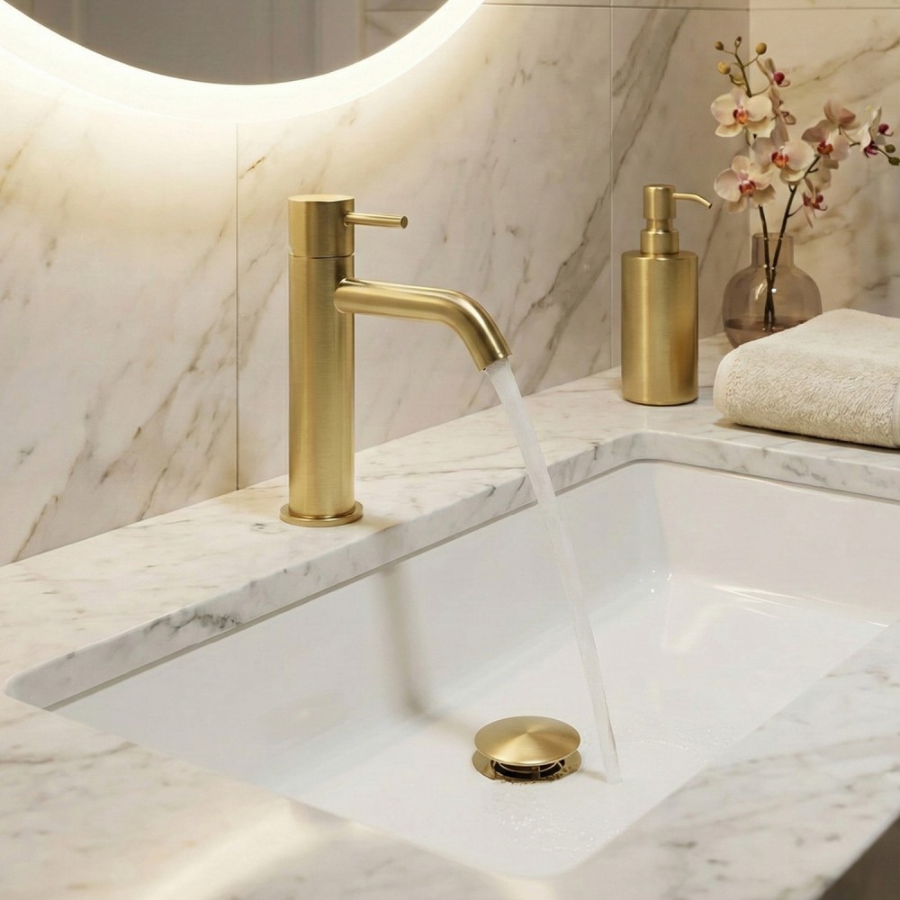 Métamorphosez votre salle de bain avec ce robinet au design épuré, alliance parfaite entre modernité et élégance intemporelle. Sublimé par une finition haut de gamme, ce robinet et sa bonde assortie capturent la lumière avec raffinement pour devenir les véritables pièces maîtresses de votre vasque. Sa conception robuste vous assure un confort d’utilisation exceptionnel et une durabilité à toute épreuve.