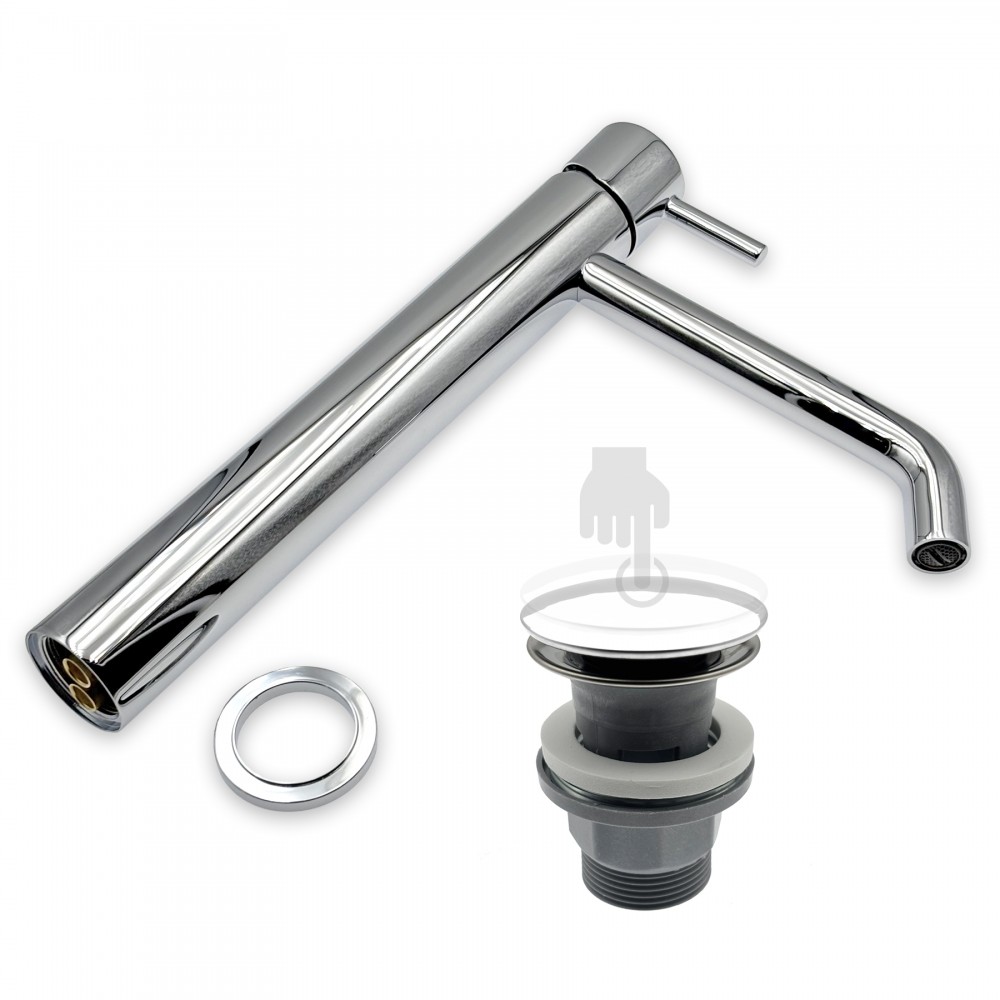 | bulletpointA | CIRICULUS XL Robinet mitigeur pour vasque à poser + 1 bonde pop-up assortie incluse (ce robinet existe aussi au format standard, modèle CIRICULUS) |