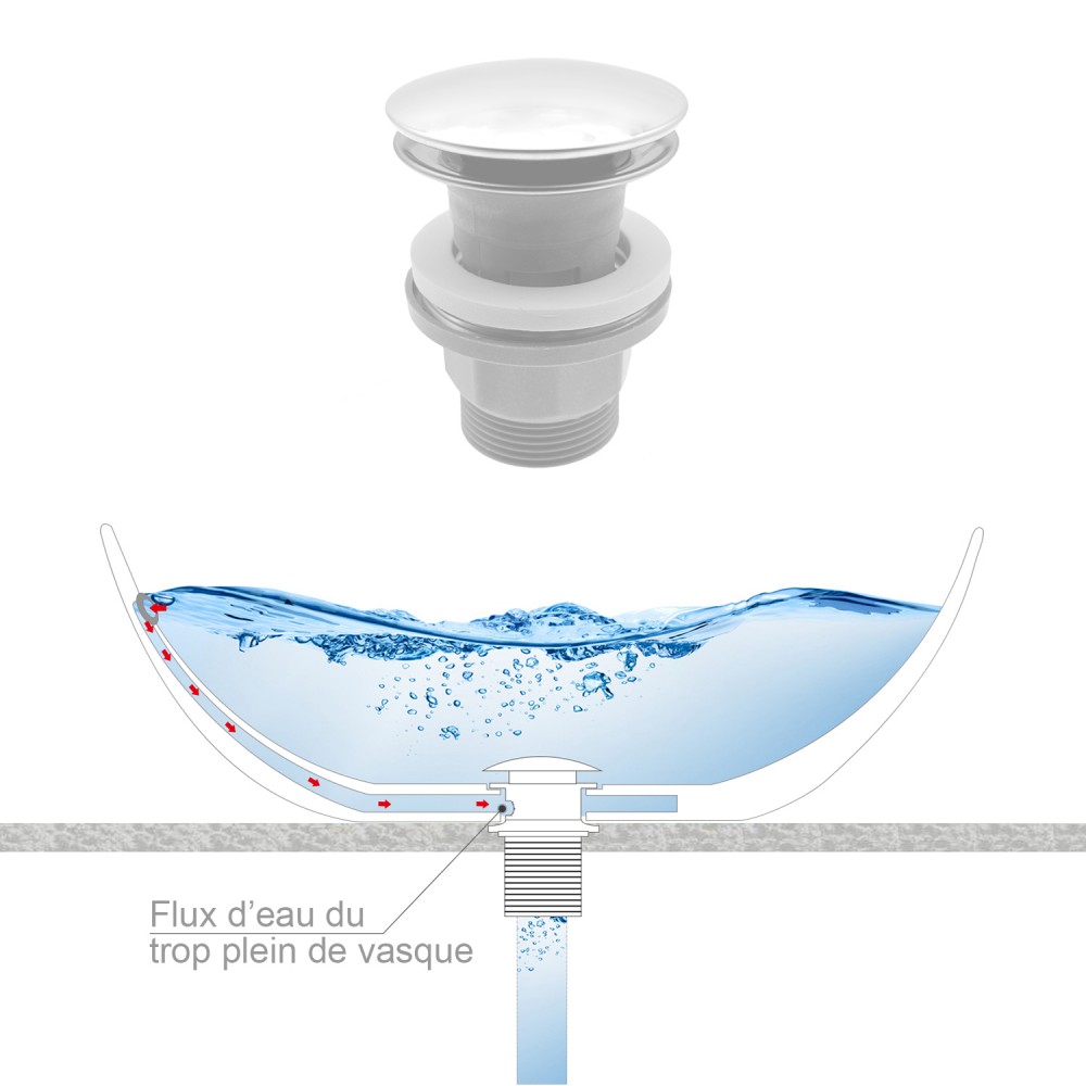 Compatible avec l'évacuation du trop-plein de la vasque
