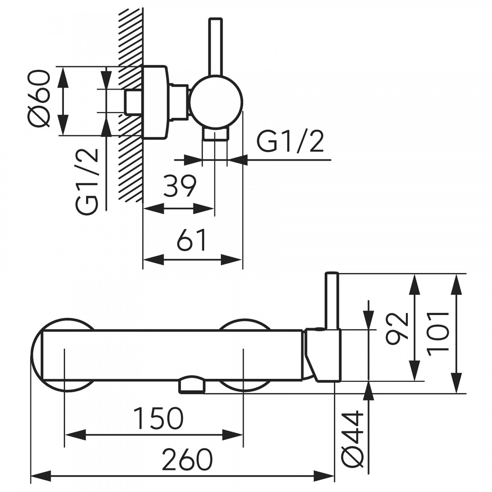 | bulletpointE | Installation standard : entraxe 150 mm, raccords G1/2. Kit de fixation inclus. |