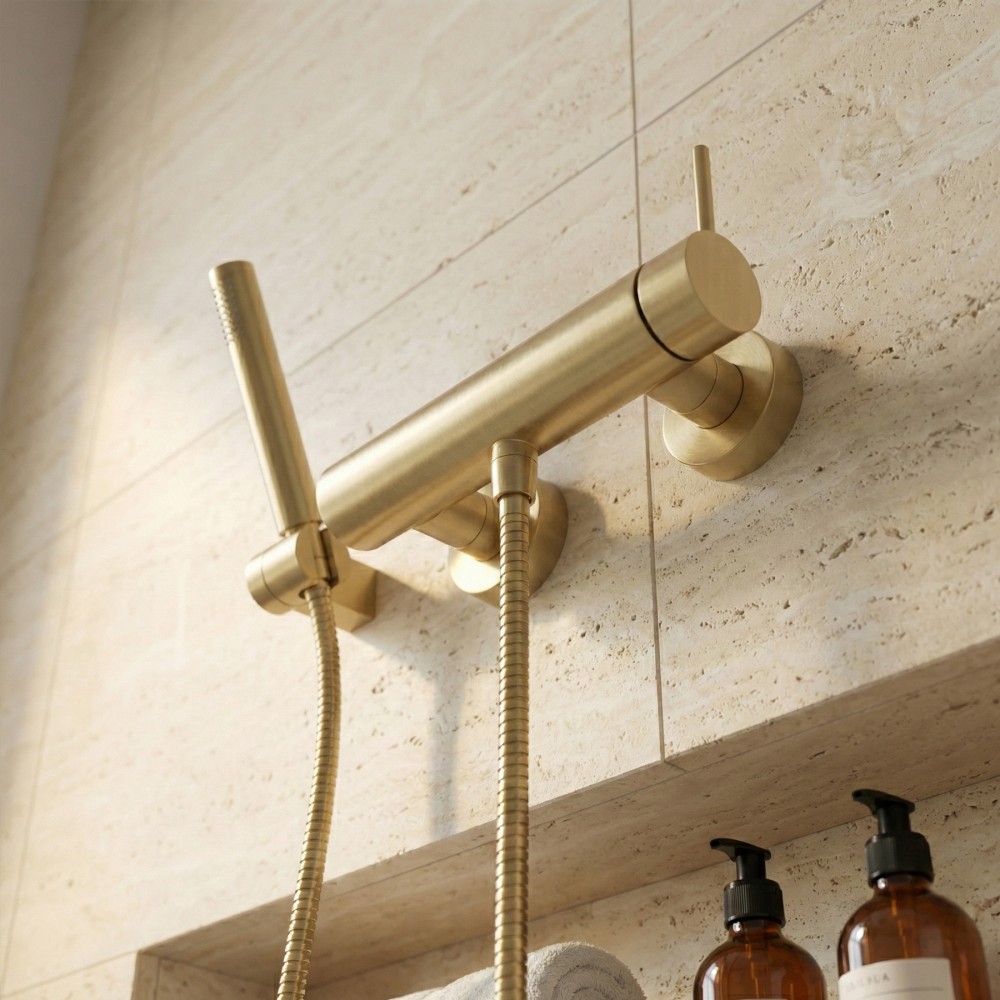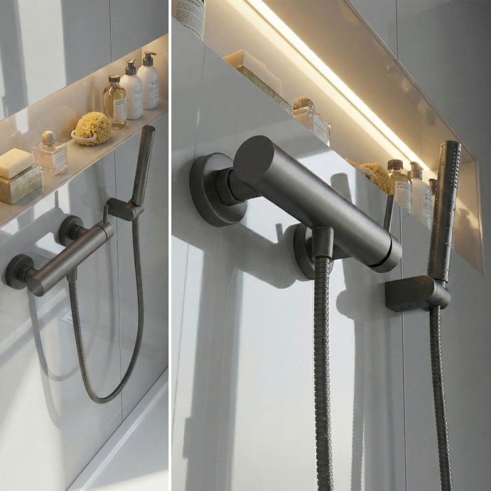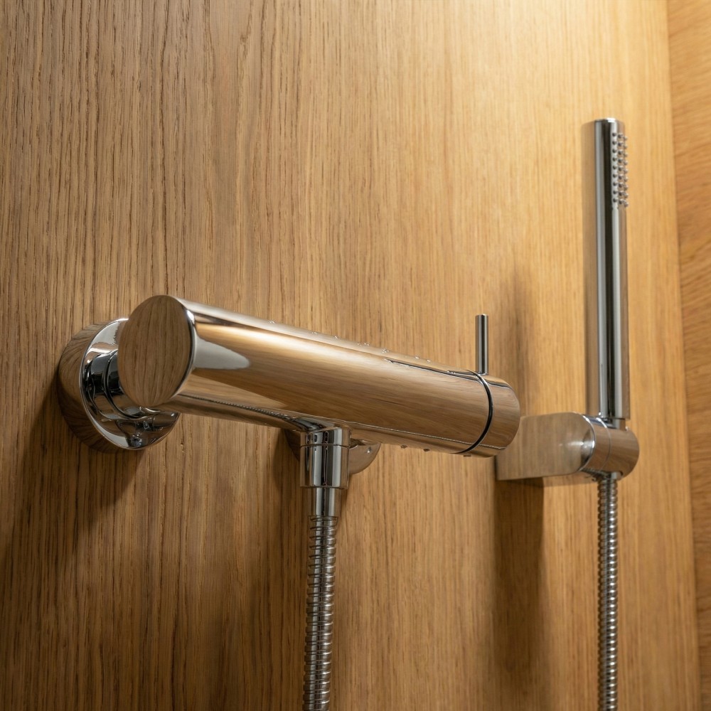 | bulletpointA | Mitigeur mural de bain avec douchette à main + flexible de douche inclus. |